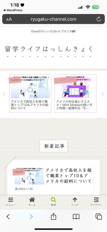 I run “Ryuugaku Channel.com” as a personal blog. This blog is about my college life in the United States and is intended to encourage people who want to study abroad. This blog is only available in Japanese, but I plan on publishing in English as well.